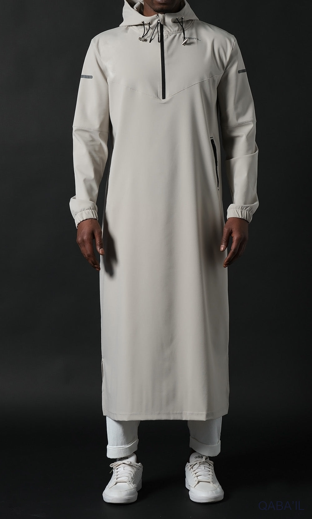The DRIFT Sweat Qamis combines modern performance with modest fashion. Designed for active men, it reinvents the traditional qamis with a technical and urban approach. Its hooded design and zip details create a dynamic and contemporary look.