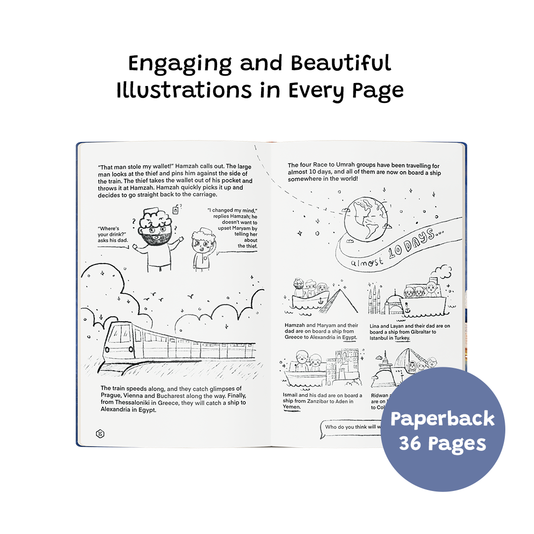 The Story – Could you make it all the way to Makkah without catching a plane? That’s the challenge facing Hamzah, Maryam, and their friends from Morocco, Zimbabwe, and Indonesia. It’s a thrilling race to Umrah, where they travel by ship, train, tuk-tuk, hot air balloon, and even camels! Along the way they explore new countries, raise money for charity, and discover that the true race is the race to good deeds.